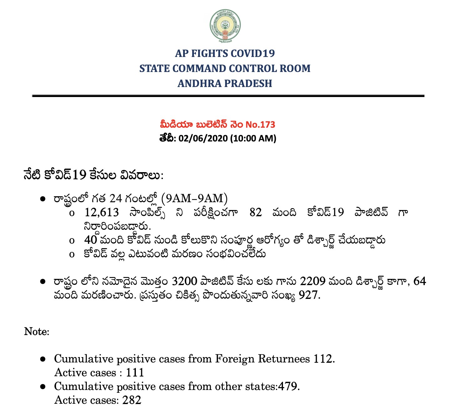 COVID 19 - AP Latest Bulletin-173